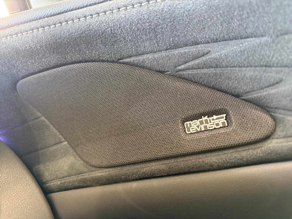 This demonstrator is plush with refinement: semi-aniline leather upholstery; heated and ventilated front (14-way with memory) and outboard rear seats; panoramic glass roof; ambient lighting; and the symphonic 21-speaker Mark Levinson sound system