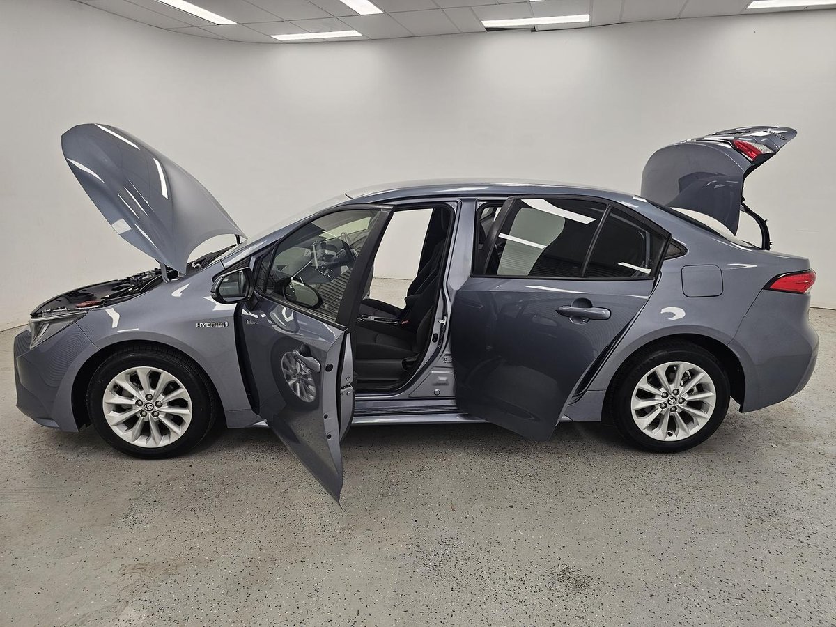 The 2022 Toyota Corolla ZWE211R SX Hybrid Sedan 4-door E-CVT 1 sp 1.8 i/53 kW Hybrid is a smart, fuel-efficient compact sedan combining a 1.8-litre petrol engine with an electric motor and an electronically controlled continuously variable transmission (E-CVT) to deliver smooth, economical performance ideal for daily driving. Marketed with a strong focus on technology and safety, it typically features a touchscreen infotainment system with Apple CarPlay and Android Auto, Bluetooth and USB connectivity, plus driver aids like adaptive cruise control, lane-trace assist, pre-collision braking, blind-spot monitoring and rear cross-traffic alert to enhance confidence on the road. Comfortable and practical, the SX Hybrid also includes dual-zone climate control, keyless entry with push-button start and Toyota’s Hybrid Synergy Drive system for seamless transitions between petrol and electric power, making it both eco-friendly and well-equipped for modern motoring.